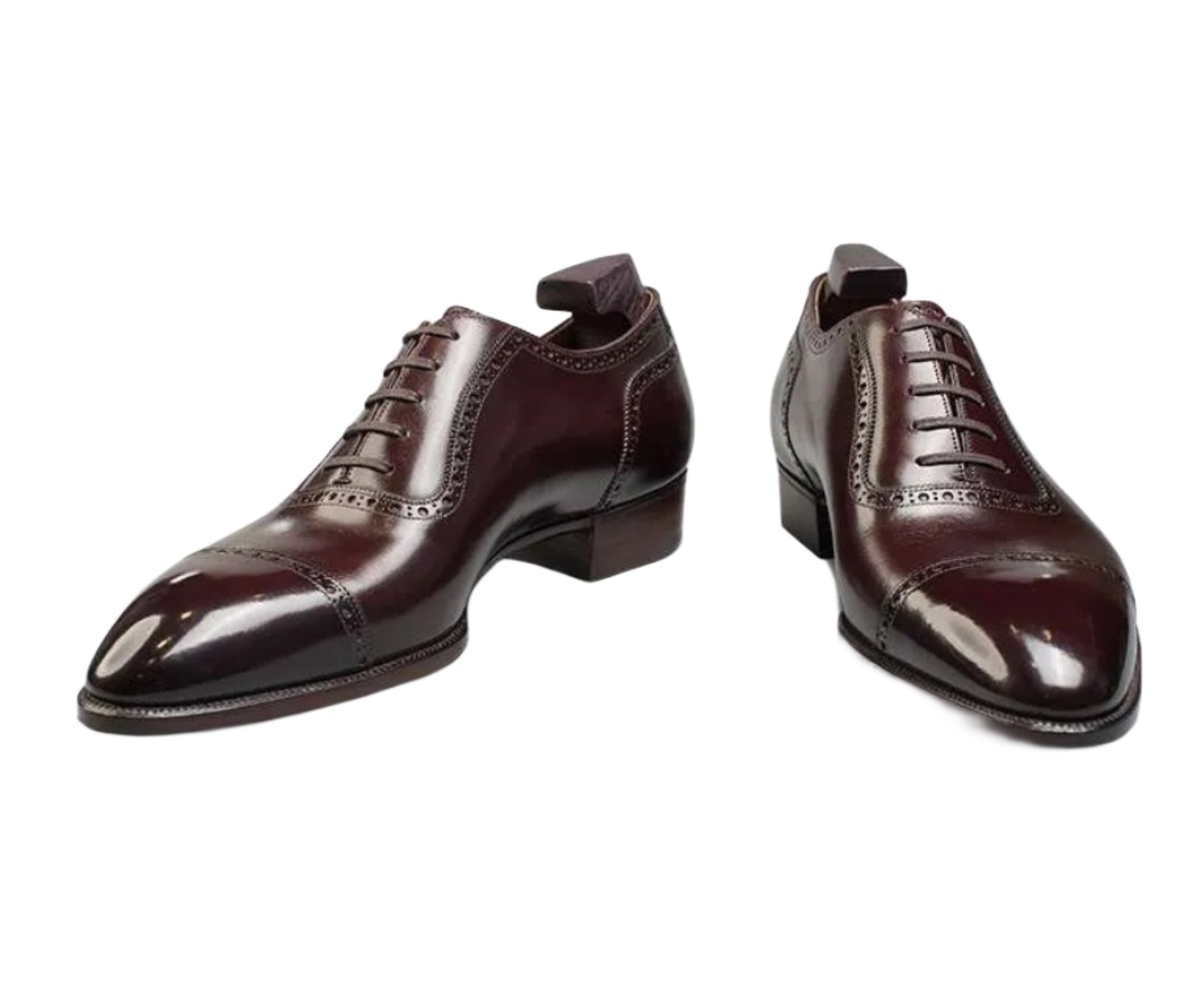 These brown captoe brogues are a must-have for any stylish wardrobe. Made with high-quality leather and intricate brogue detailing, these shoes are not only fashionable but also durable. The classic captoe design adds a touch of elegance, making them perfect for any formal occasion or business setting. Upgrade your shoe game with these versatile and timeless brogues.